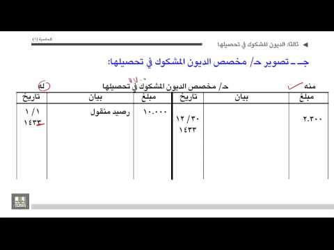 مبادئ المحاسبة الديون المشكوك في تحصيلها 1 3 1 8 Youtube